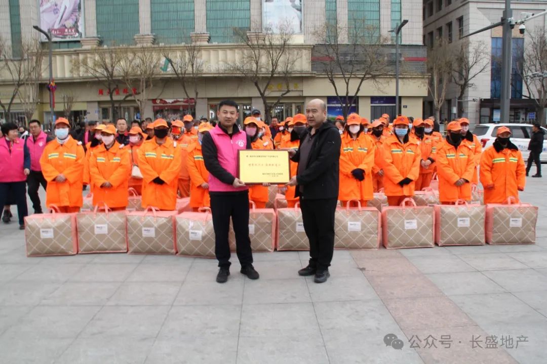 為弘揚雷鋒精神,傳遞社會溫暖。3月7日,榆林市長盛集團房地產(chǎn)開發(fā)有限公司聯(lián)合胡拖蓮雷鋒志愿服務隊在榆林世紀廣場開展“情系環(huán)衛(wèi)工,暖心慰問致敬城市美容師”愛心活動。榆陽區(qū)環(huán)境衛(wèi)生管理局副局長張敏主持,公司總經(jīng)理徐遼飛,總經(jīng)理助理楊斌參加活動。