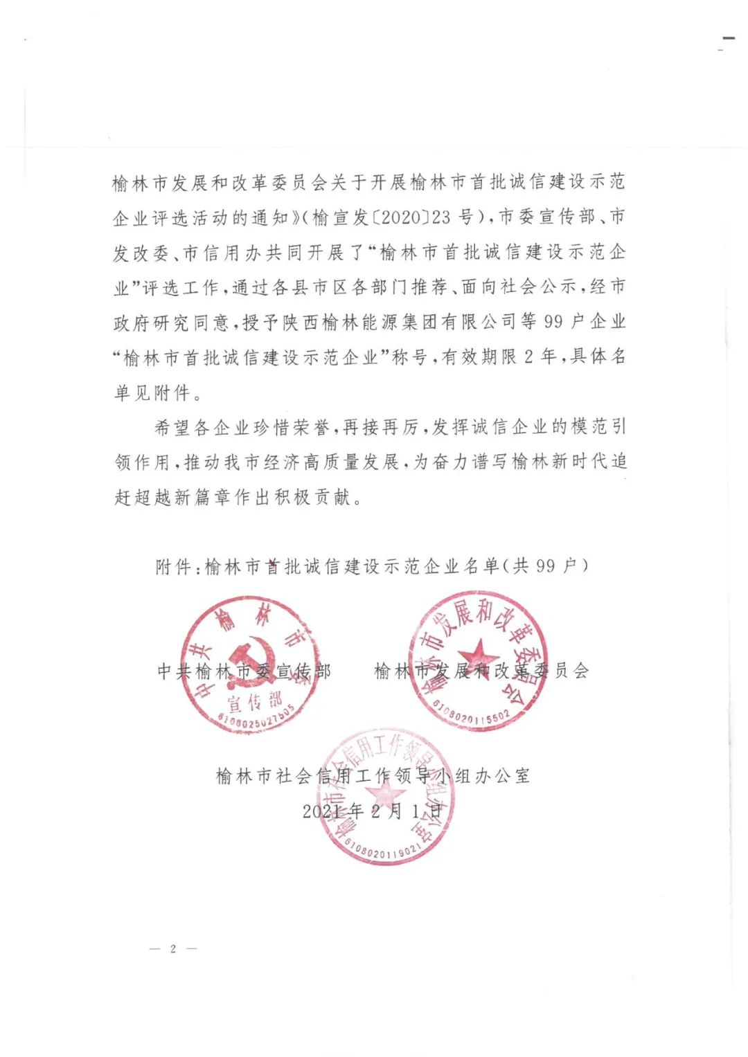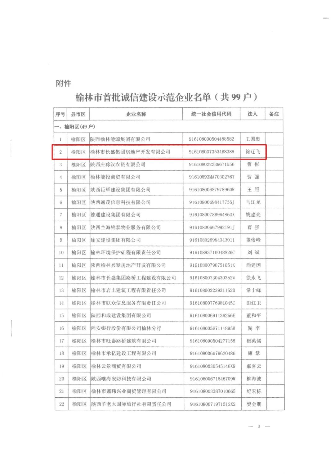 長(zhǎng)盛地產(chǎn)公司榮獲“榆林市首批誠信建設(shè)示范企業(yè)”稱號(hào)