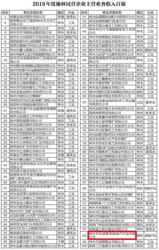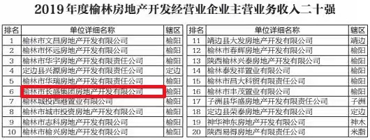 長盛地產(chǎn)公司入榜榆林市“房地產(chǎn)企業(yè)主營業(yè)務收入二十強”和“民營企業(yè)主營業(yè)務收入百強”