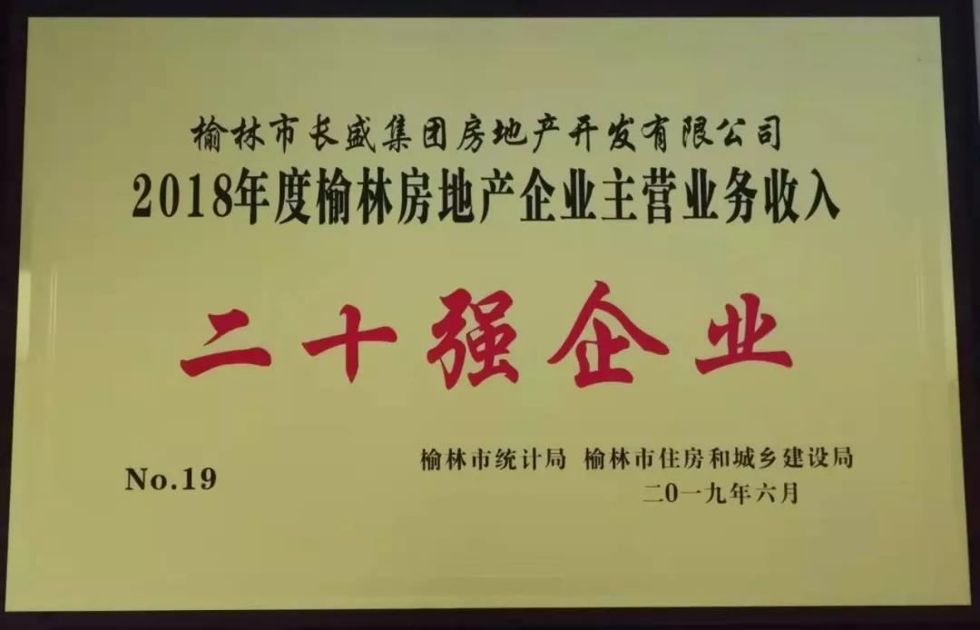 “榆林市長(zhǎng)盛集團(tuán)房地產(chǎn)開(kāi)發(fā)有限公司”獲評(píng)“2018年度榆林房地產(chǎn)企業(yè)主營(yíng)業(yè)務(wù)收入二十強(qiáng)企業(yè)”